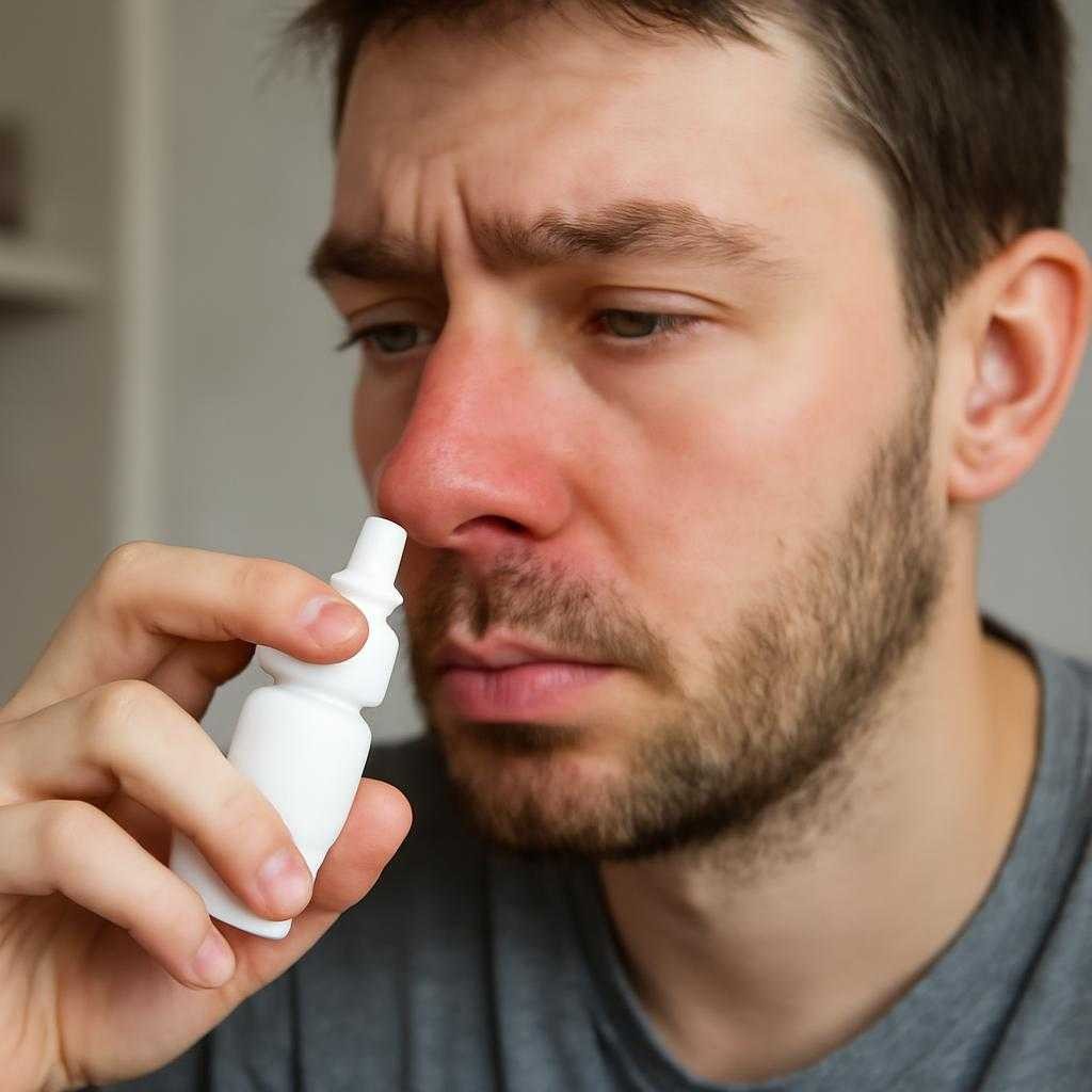 Ключевой признак — стойкая заложенность после нескольких дней применения сосудосуживающего средства и краткий эффект от новой дозы. Нос дышит 2–4 часа, затем снова закладывает. Ночью человек просыпается из-за невозможности вдохнуть носом. Без флакона возникает тревога, поездки и работа планируются с запасом препарата.
